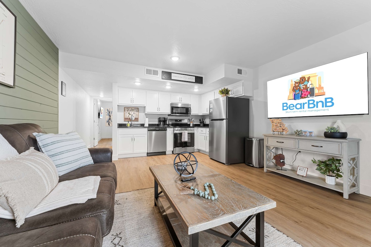 Peaceful, centrally located newly renovated walk-in 1 bedroom Condo ideal for couples or small families. This beautiful getaway includes new flooring, a kitchen, a queen size sleeper sofa, a heavenly reclining chair to unwind while watching the big screen TV. Enjoy a great night's sleep in a luxurious king size bed. Located just minutes from the Entertainment District, fabulous dining and shopping options, Lake Taneycomo Marina and hiking, fishing, boating and swimming at Table Rock Lake.