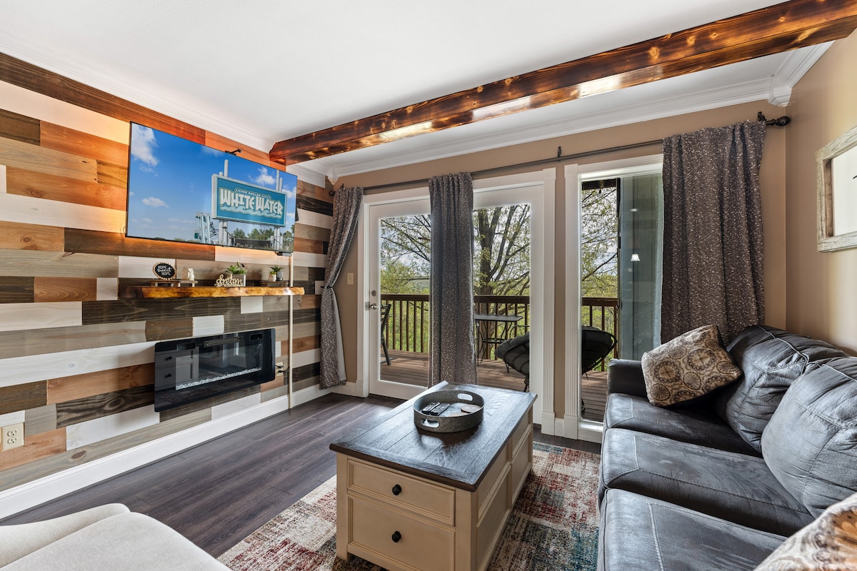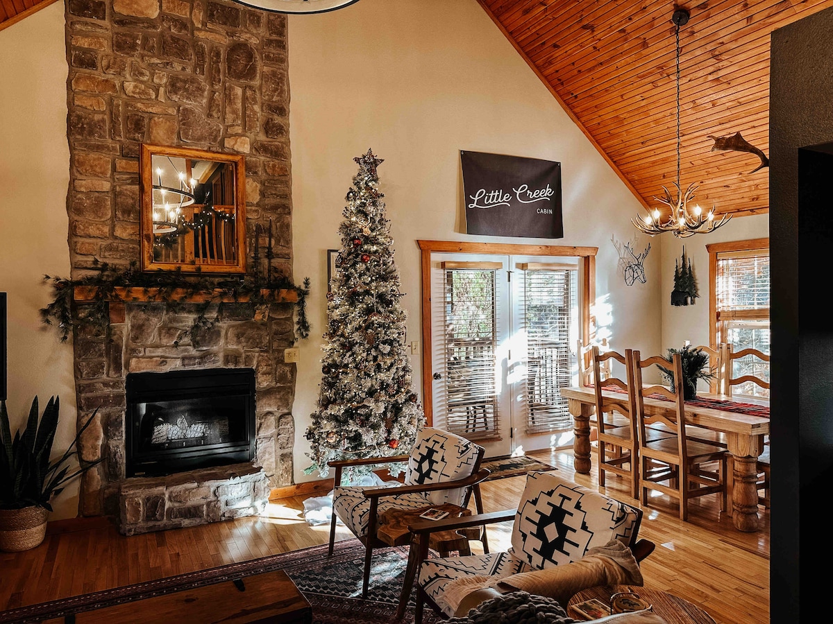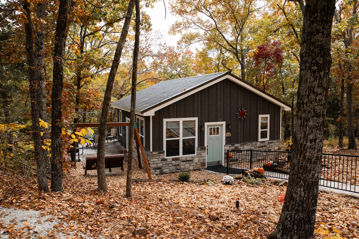 Welcome to The Tree + House at Indian Point! This custom luxury treehouse was built with comfort and relaxation in mind. Perfect for up to four guests, it’s surrounded by forest and filled with natural light from floor-to-ceiling windows that showcase stunning views of Table Rock Lake. You’ll feel tucked away in your own private retreat, yet still be just minutes from the water and Silver Dollar City. It’s the ideal mix of peaceful nature and modern style.