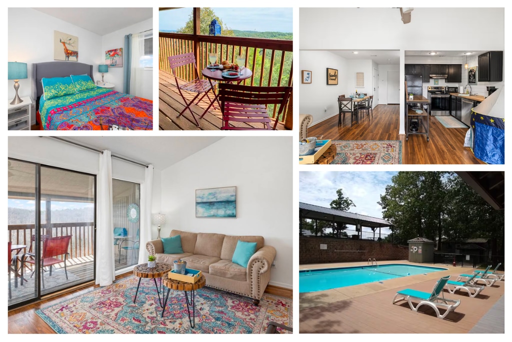 This Branson Vacation condo is located in a quiet complex in the middle of over 300 acres of wooded Ozark mountains. You will enjoy a condo that has great light and beautiful views of the Ozark Mountains! Our queen bed has a comfortable 4-inch foam topper to give you the extra comfort of a great night of sleep away from home. There is a very comfortable sofa (with a queen-size sleeper) and a large TV in the living room so you can unwind after a fun day on the lake or in Branson.