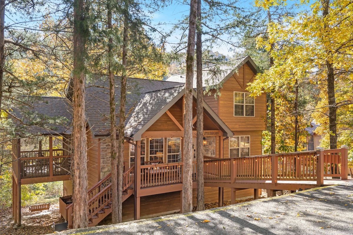 Take it easy at this unique and tranquil getaway. This one bedroom cabin overlooking a creek is minutes away from restaurants and entertainment yet secluded enough for privacy and peace. It has a full kitchen, 50 inch tv, WiFi, coffee bar, deck and much more! You now have the option as a two bedroom if you need more space check out our other listing with the original creekside log cabin! Book your stay today!