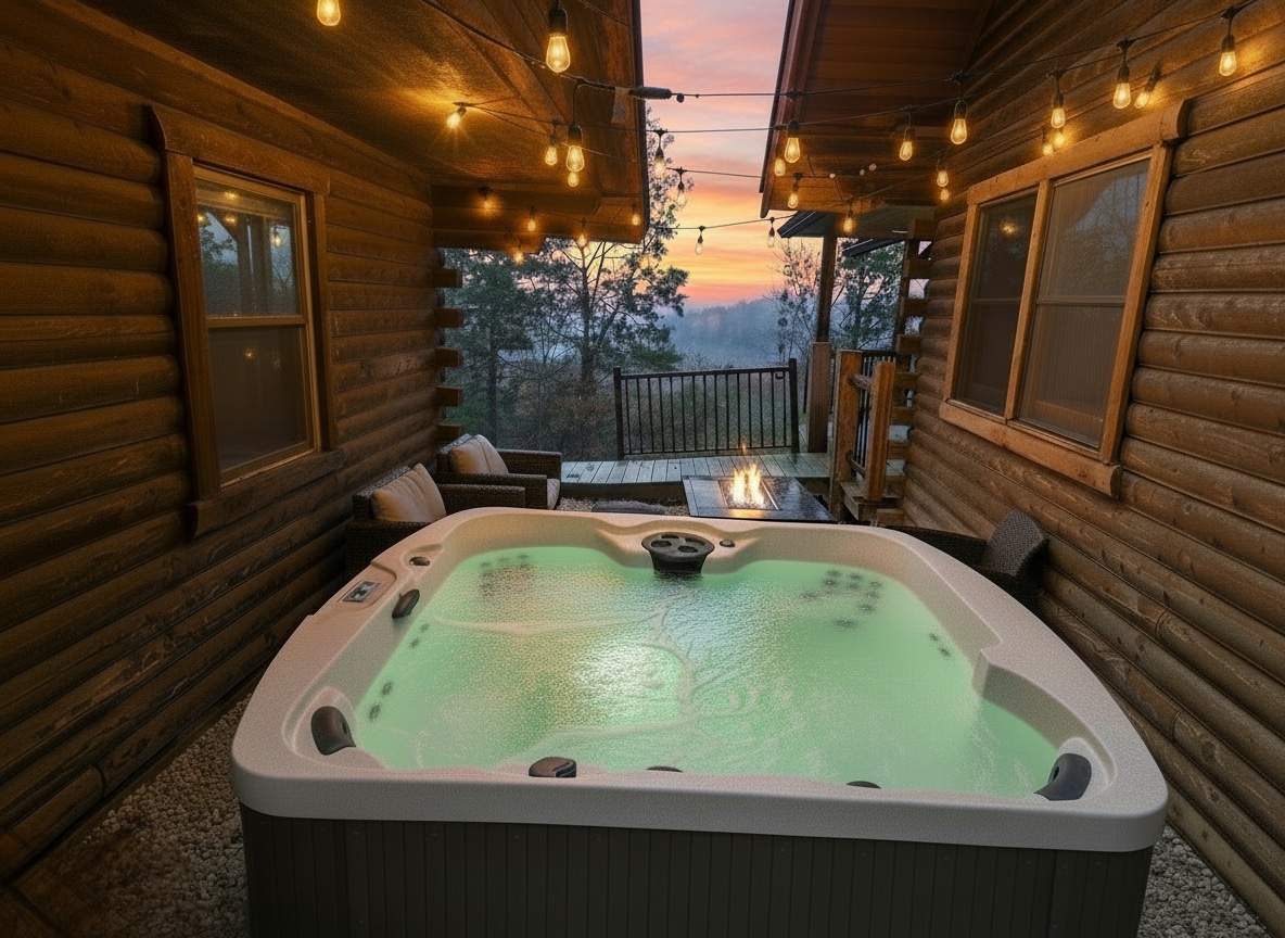 全新装修的小木屋,配备泳池、热水浴缸和火坑!