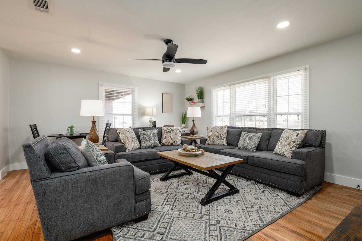 The Great Escape is on the shore of beautiful Lake Fork in Emory, Texas. It's a charming 3 bedroom, 2 bathroom house with wood beams, shiplap walls, and more! The backyard boasts a large covered porch with grill, a beautiful pergola with individual swings, and a large covered dock with boat slip as well as covered and uncovered seating areas. The Great Escape is situated in a quiet, private neighborhood and is perfect for a guys' fishing trip, a girls' get together, or any getaway you choose!