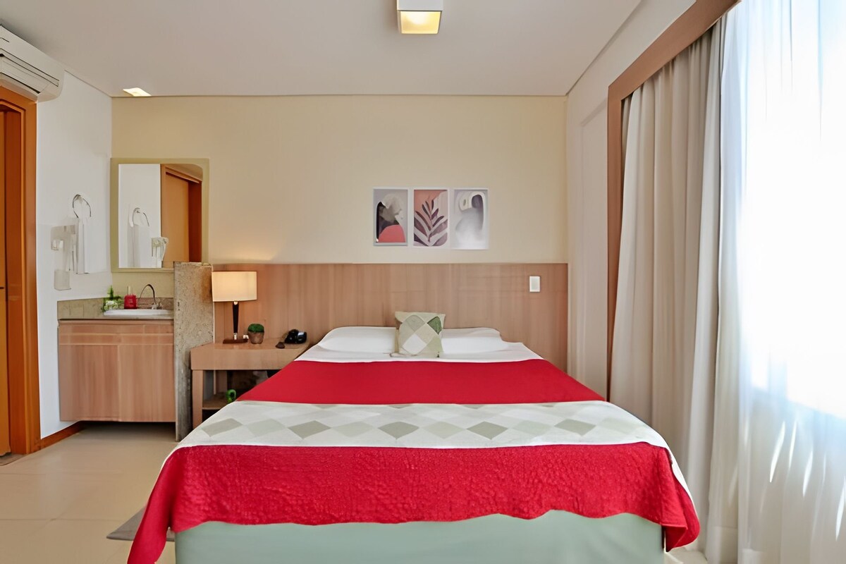 Curta uma experiência maravilhosa neste flat, no hotel vision, super moderno e aconchegante. Localizado no centro de Brasília, próximo aos principais pontos turísticos e shoppings da cidade. Nosso flat disponibiliza alem de todo conforto, tv smart com Netflix, Wi-Fi (350 megas), 1 colchão extra (mediante a pedido no ato da reserva) ferro de passar, uma cozinha com vários utensílios e eletros, uma vaga de garagem, e toda uma área de lazer com piscina, sauna, restaurante e academia.