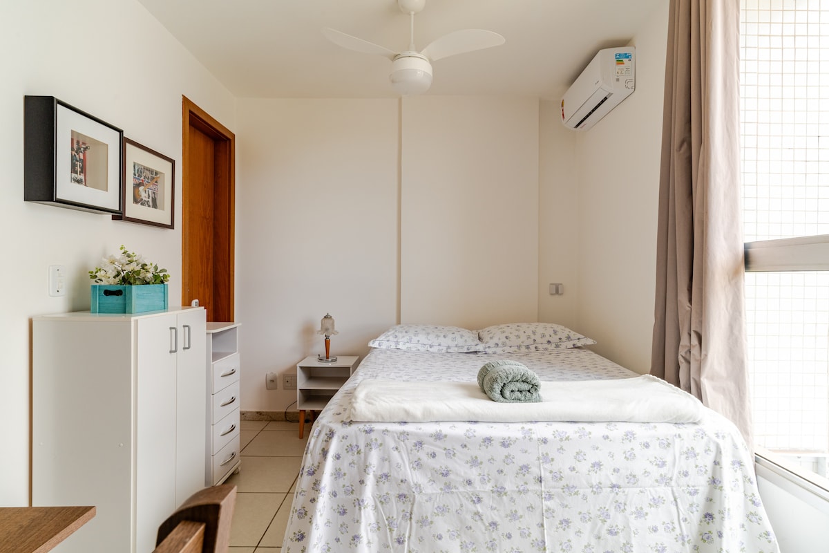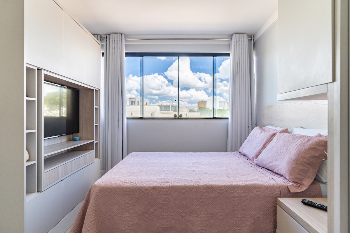 Apartamento recém reformado e super equipado, localizado no coração de Brasília, em bairro nobre da capital. Com vista livre para área verde, é um local tranquilo e aconchegante, além de muito seguro, pois está localizado em frente a um batalhão da polícia militar. - Localização privilegiada: tenha fácil acesso ao centro e a comércios diversos, incluindo mercado, padaria, farmácia, restaurante, etc. - Wi-Fi ultra rápido. - Garagem coberta privativa e elevador. - Ar-condicionado.