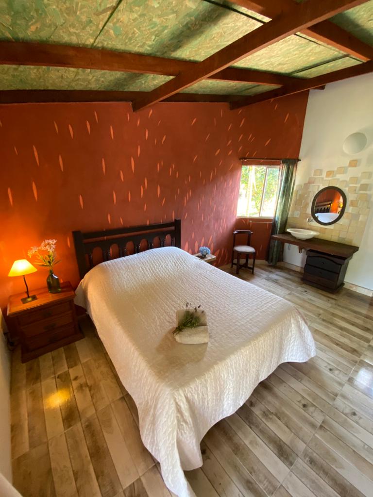 Chalé de bioconstrução rústico e integrado, feito por nós, proporciona privacidade, conforto e um total contato com a natureza. Se chegue, Não Pire, Respire, Fique Descalço e Sinta a Energia!