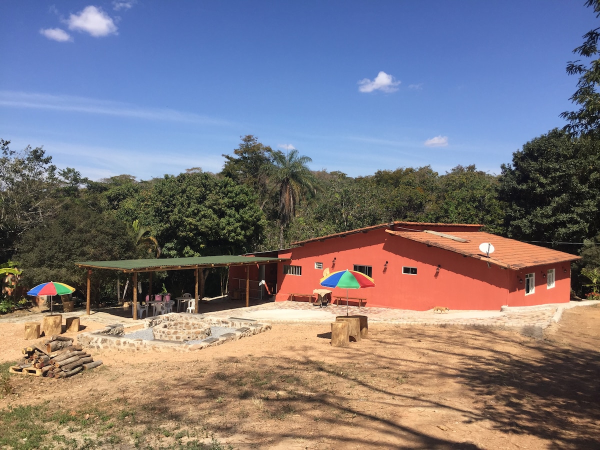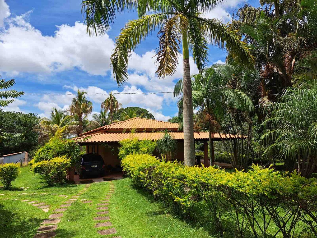 Chácara aconchegante situada a 70km de Brasília, a 5km da divisa entre DF e GO e a 1km da BR 251. Lugar perfeito para descansar e contemplar a natureza. Local com diversos pássaros, nascente, frutíferas, mata, tanque para pesca infantil e galinheiro. Casa confortável com churrasqueira, mesa de ping pong, duas piscinas, uma delas infantil, ideal para momentos em família e de pequenos grupos de amigos. Conceito de hospedagem rural de perfil familiar.