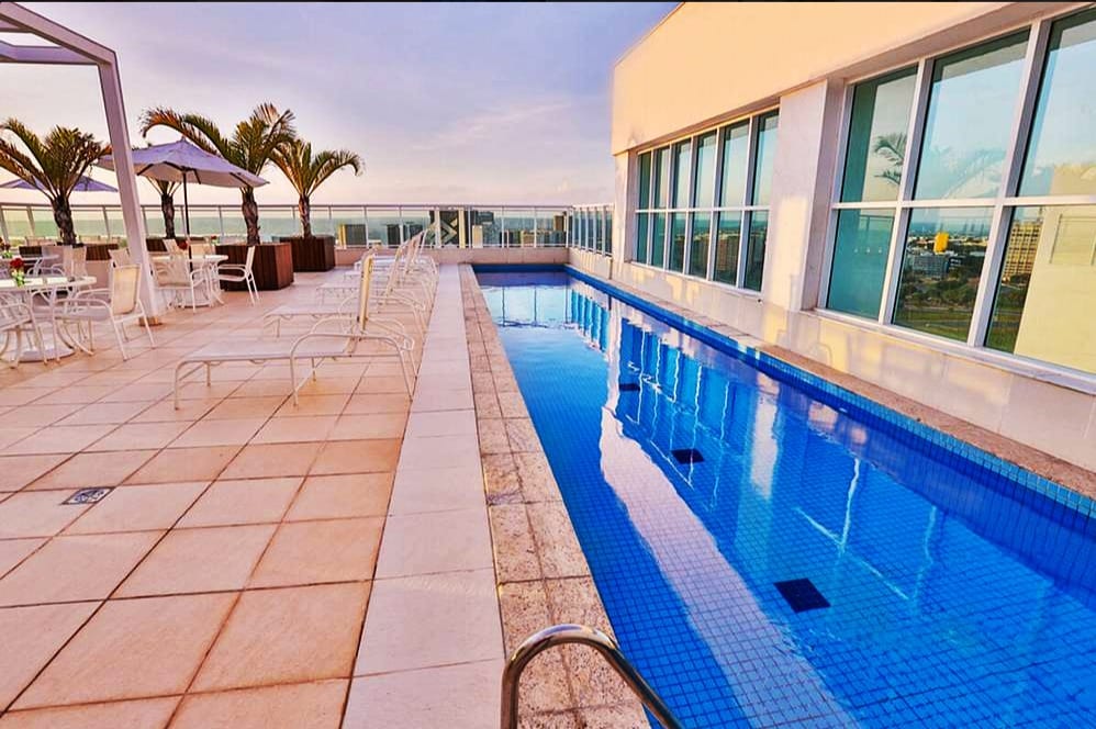 "Excelente localização - Shoppings e Restaurantes perto - Fácil acesso, check in e check out realizados de forma rápida e eficiente". • Piscina na cobertura • Academia • Restaurante panorâmico • Cama Queen - Colchão de ar com bomba elétrica • Ar Condicionado • Wi-Fi • Microondas e Cooktop • Frigobar •Toalha e lençol - máquina de café Nespresso (sem cápsulas) Obs: MENORES DE 18 ANOS viajando sem os pais deverão portar autorização autenticada em cartório destes. OBS: NÃO FUMANTES