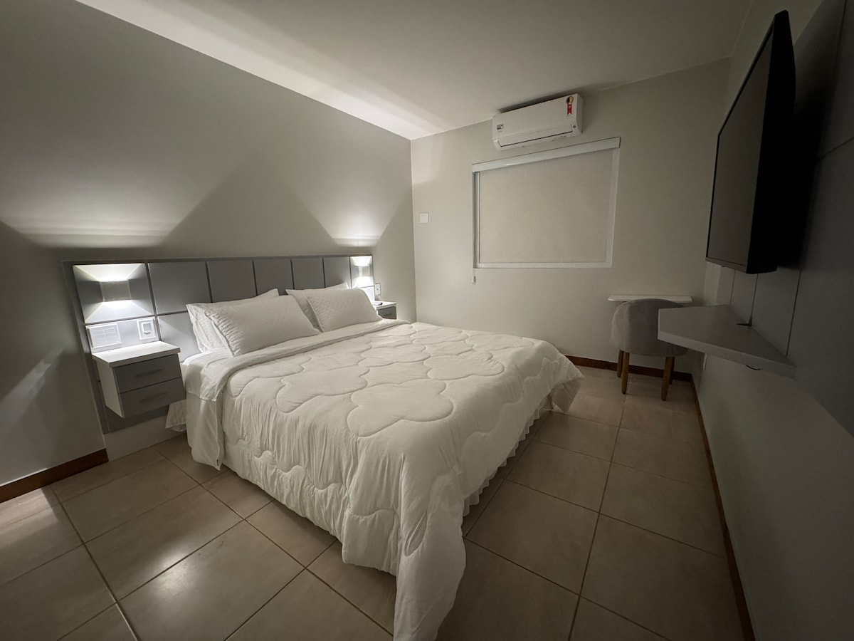 Apartamento no Life Resort, em frente ao Lago Paranoá, jardim e piscinas, decorado para o bem-estar dos hóspedes, com mobiliário novo, cama-box queen, frigobar, tv de 50", cafeteira Nespresso, filtro com água gelada, armários e suporte para mala, ferro de passar, secador de cabelo, berço desmontável (sob solicitação), coktop, microondas, pratos, copos, talheres, panelas e utensílios. Como cortesia: mini sabonete, shampoo e condicionador, roupa de cama e banho, produtos de limpeza e WiFi.