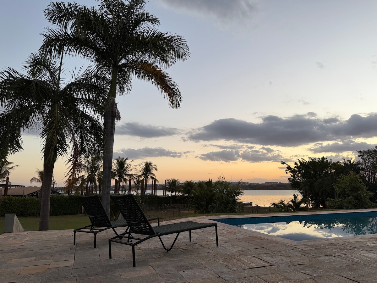 Refúgio moderno à beira do Lago Paranoá, com uma das vistas mais privilegiadas de Brasília. Os hóspedes nos dizem: 'foi a melhor experiência Airbnb que já tivemos!' Desperte com o lago, caminhe na natureza e contemple pores do sol de tirar o fôlego. Tudo novo, suíte com closet, 2o quarto, conforto e espaço sem igual. Três smart TVs, cozinha equipada, cafeteira com cápsulas e um super kit de boas-vindas. Localização perfeita: 9 min do Iguatemi, 15 min da Esplanada, 25 min do aeroporto.