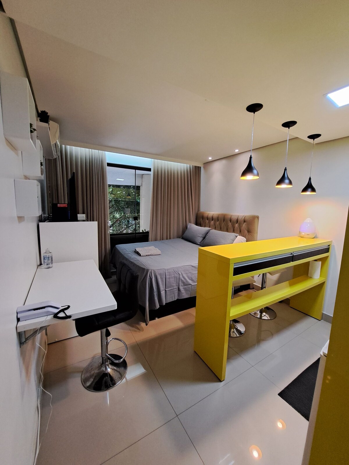 O flat fica no 16º andar do condomínio Saint Moritz, uma localização super acessível, a mais próxima dos ministérios, sedes do governo federal e estadual, shoppings, pontos turísticos, rodoviária, metrô e ponto de táxi. Loft with a modern decoration in an industrial style, very cozy, downtown Brasília, near the ministries and the Federal Government. Flat mit einer modernen Dekoration in einem Industriestil, sehr gemütlich, in der Stadtmitte, in der Nähe der Ministerien und der Bundesregierung.