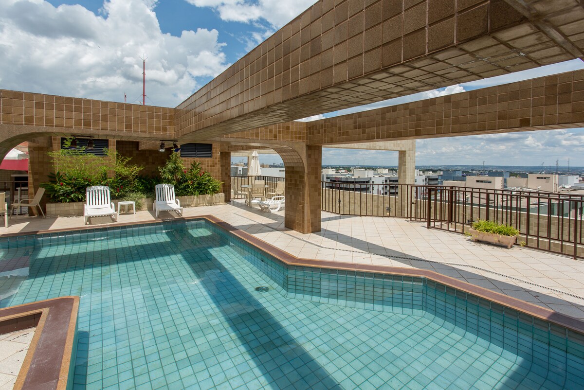 Espaço ideal para hospedagem com conforto e segurança. Dispõe de Chaves Eletrônica com senhas o que proporciona segurança e facilidade de check-in. Smart TV 43", WI-FI 250MEGA com acesso NETFLIX e Canais, ar condicionado, cama de casal e garagem coberta. O bairro fica em local privilegiado, com amplo comércio, áreas de lazer, restaurante, farmácia, panificadora, supermercado 24H, agência bancária, salão de beleza, Paris etc... Local muito próximo ao centro e Esplanada dos Ministérios.