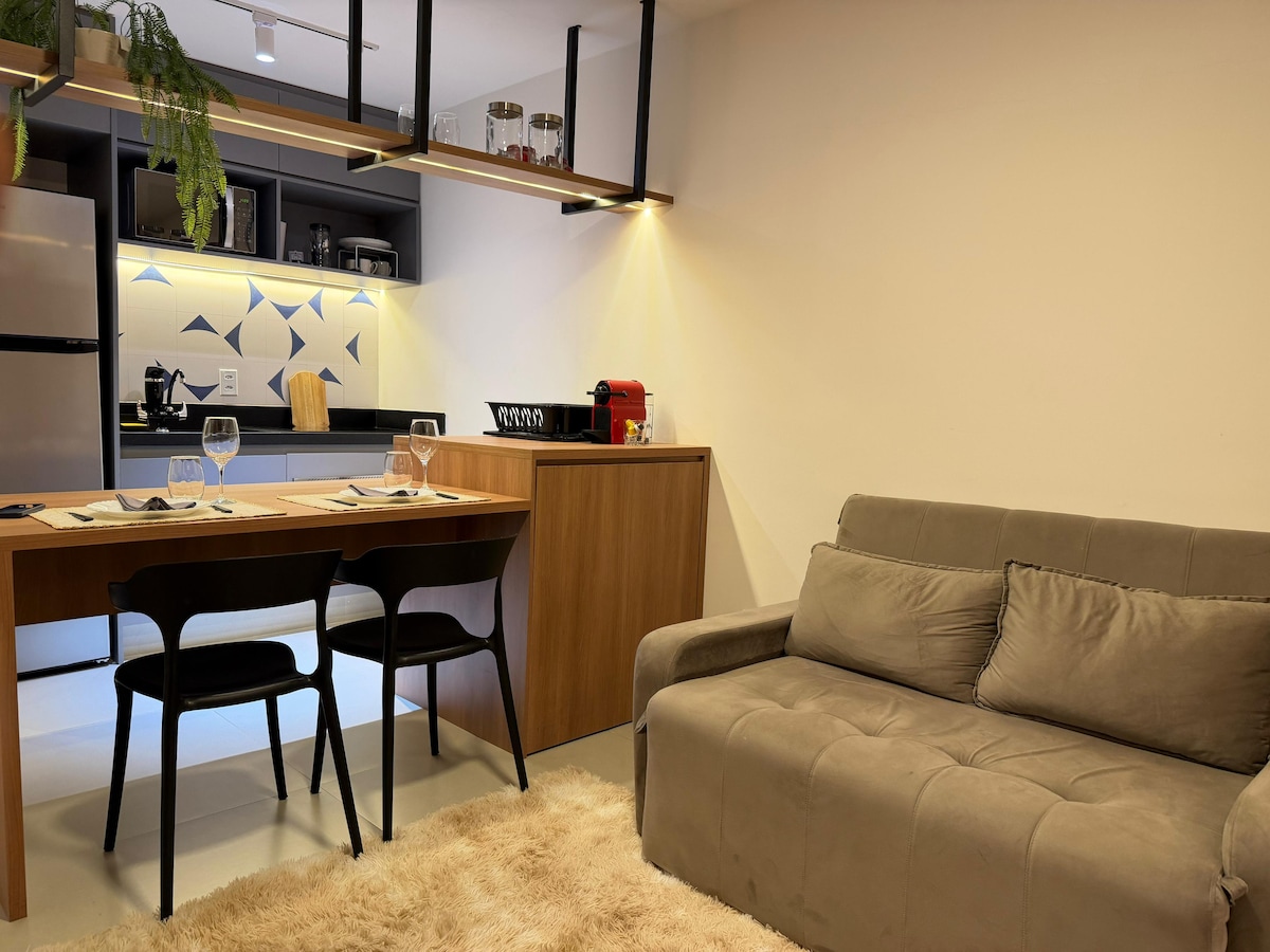 Espaço moderno e aconchegante no Sudoeste, em frente ao Bosque. Confortável para até 4 pessoas, este apartamento de conceito aberto oferece design sofisticado, ar-condicionado, cozinha completa e garagem coberta. Perfeito para quem busca tranquilidade e conveniência em uma das áreas mais charmosas de Brasília. Perto de mercados, academias e restaurantes, e próximo ao Estádio e ao Centro de Convenções.