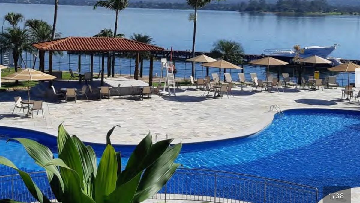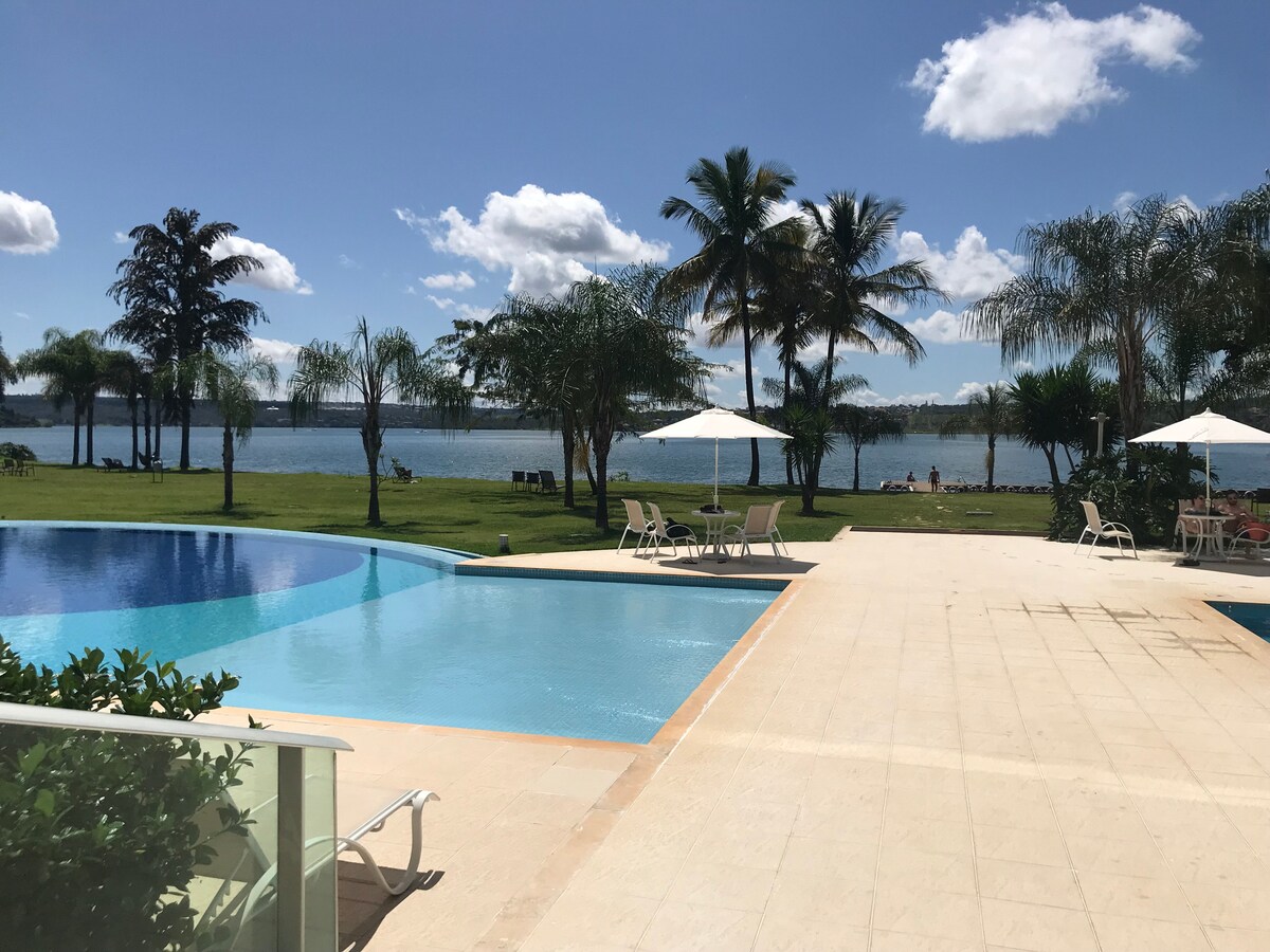 O apartamento está localizado à beira do Lago Paranoá. A varanda NÃO tem a vista para o Lago, porém está no bloco N, principal do Life Resort - no térreo fica a pizzaria, restaurantes, loja de conveniência, salão de beleza, e fácil acesso a piscina e gramado. IMPORTANTE: solicitamos a gentileza de nos informar, com até 24 horas de antecedência do checkin, o nome completo, RG e número de telefone para a autorização de entrada no condomínio e apartamento (portaria e recepção).