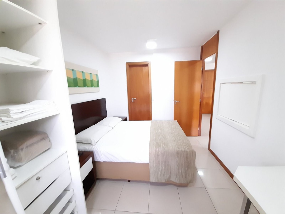 O apartamento é ideal para casais, estudantes, solteiros e quaisquer pessoas que estejam à procura de muita elegância e conforto aliadas à praticidade que a mobília de fino acabamento e os utensílios de alta qualidade do apartamento proporcionam. Ele se destaca pela localização privilegiada, com acesso ao Plaza Shopping DF e ao supermercado Carrefour e Sam’s Club dentro do complexo que inclui o condomínio. É isso mesmo! Basta descer até o Térreo, sair na portaria e você se encontra dentro do Plaza Shopping. Dentro dele, está o Carrefour e o Sam’s Club. - Netflix - Cafeteira - Lavanderia - Airfryer Equipado com fogão de indução de quatro bocas, geladeira duplex 360 litros, coifa, mesa com duas cadeiras ajustáveis, utensílios de cozinha - como pratos, talheres, copos, taças, xícaras, jarras, jogo de panelas de indução de alta qualidade, conchas, tábuas, entre outros -, roupas de cama e de toalhas de primeira linha, micro-ondas 30 litros, CAFETEIRA, sanduicheira, guarda-roupas, airfryer, produtos de higiene e de limpeza. O apartamento possui uma cama de casal com travesseiros, lençóis e cobertores de melhor qualidade para proporcionar o máximo de conforto para todos os hóspedes. Além disso, temos um sofá retrátil na sala, com 1,90m já acabado, com acolchoamento de primeira linha.
