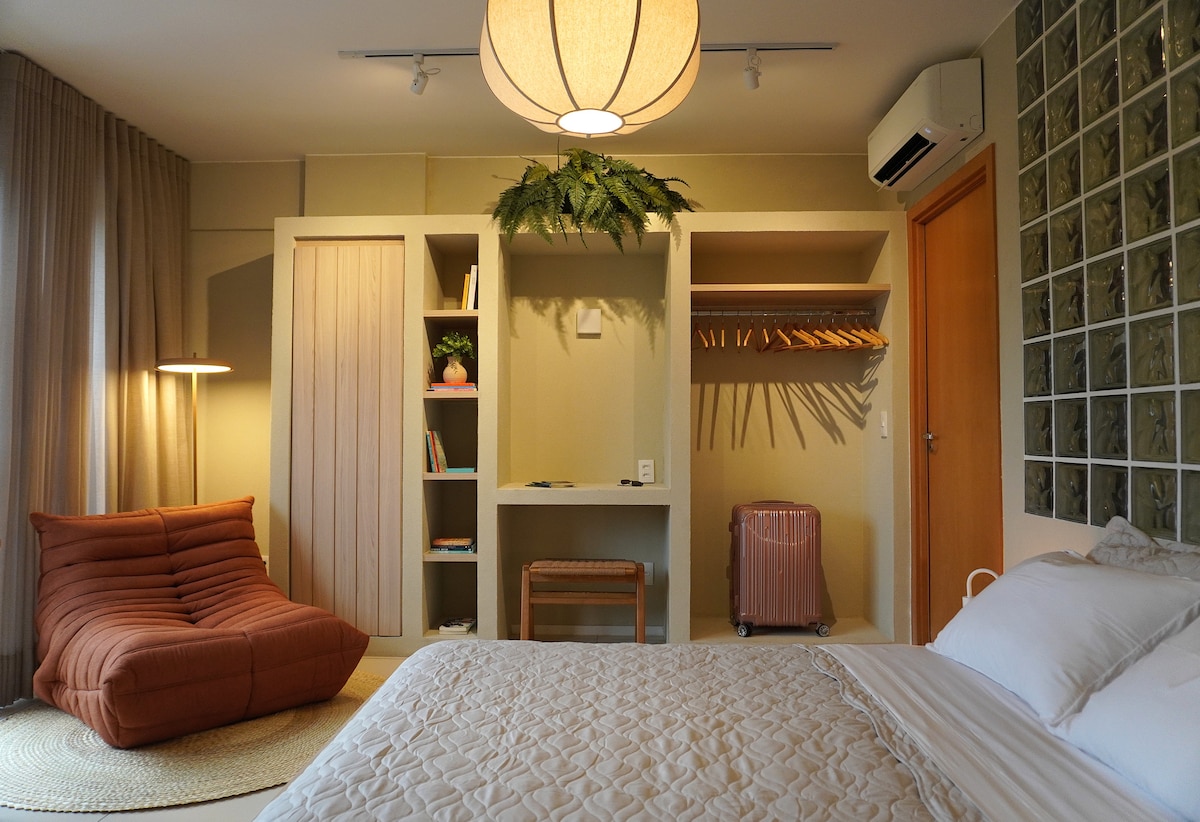 Aproveite este lugar perfeito. Nossa acomodação conta com cama queen size, varanda com vista, cozinha equipada, closet, banheira, internet, TV, ar-condicionado, ideal para relaxar após um dia explorando a cidade. Situada em uma localização privilegiada, você estará a 9 km da Granja do Torto, 13 km da rodoviária do Plano Piloto, 3,5 km da Prainha do Lago Norte, 4,5 km do Shopping Iguatemi. Venha viver uma experiência inesquecível, onde cada detalhe foi pensado pra sua melhor experiência.