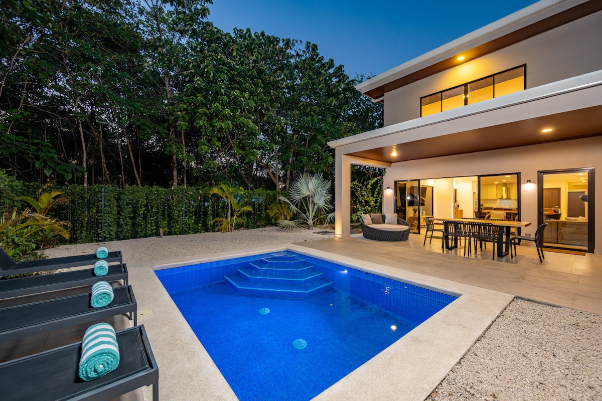 Nouvellement rénovée. Séjournez dans une superbe villa avec piscine à débordement privée, située dans une communauté sécurisée, proche des plus belles plages du Costa Rica. Entièrement rénovée en 2025, elle offre confort moderne et vue imprenable. • 2 chambres climatisées avec salles de bain privées • Espace ouvert avec cuisine équipée et salon cosy • Salle à manger extérieure pour admirer des couchers de soleil spectaculaires • Wi-Fi, alarme et parking clôturé