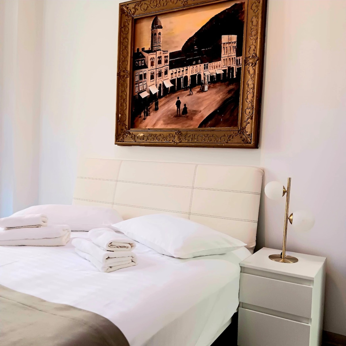 Welcome to our cozy two-bedroom apartment! Ideal for couples or a small group, it features two bedrooms, a modern bathroom, fully equipped kitchen, and high-speed internet. Enjoy the yard, free parking with a surveillance camera, and included amenities. Supermarkets are nearby, and a fantastic restaurant is just across the street. Explore the city effortlessly, and reach Bran Castle with a quick 15-minute drive. Your convenient and comfortable retreat awaits!