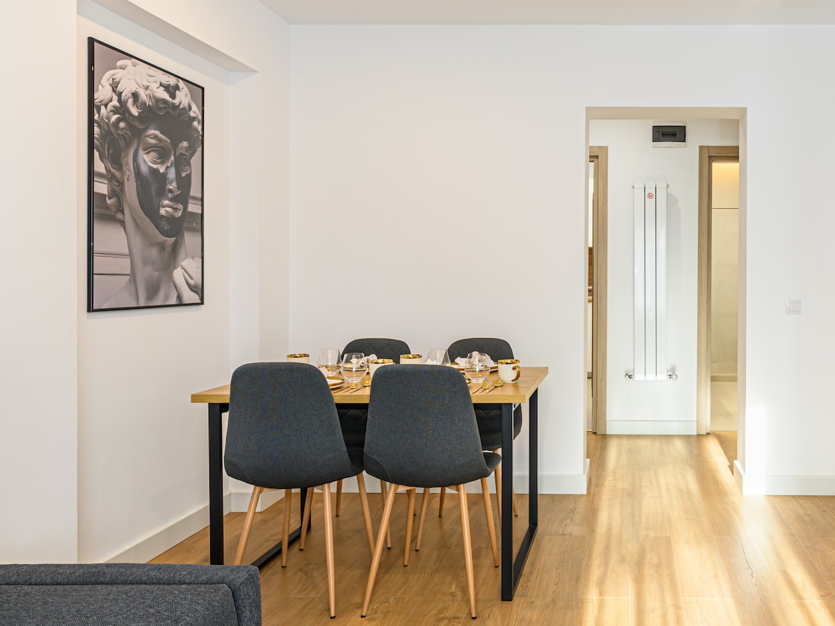 Situated in the heart of the city, this large apartment offers you easy access to all major points of interest and to the main attrctions of the city. Restaurants, bars, clubs and shops are just few steps away. The apartment offers great spaces and consists in a large living room with a kithenette, a relaxation zone and a dining table. The bedroom is next to it, and offers twin beds (can be put toghether). The private (en-suite) bathroom has a shower. The apartment can accommodate up to 4 people