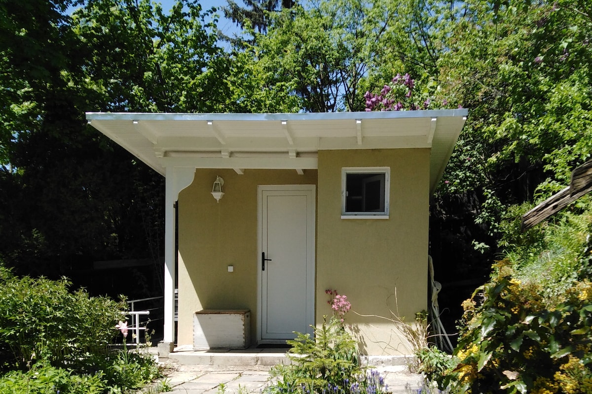 The Bungalow is set in a private garden, on a hill (5-10 min steep climb) above the Historic Center of Brasov, 750 meters away from the Council Square and the Black Church. The small interior (12 square meters) is well equipped for a short stay: towels, soap, hair dryer, toilet paper, coffee maker, a minibar with great prices. WiFi. Stoage space for luggage under the bed.