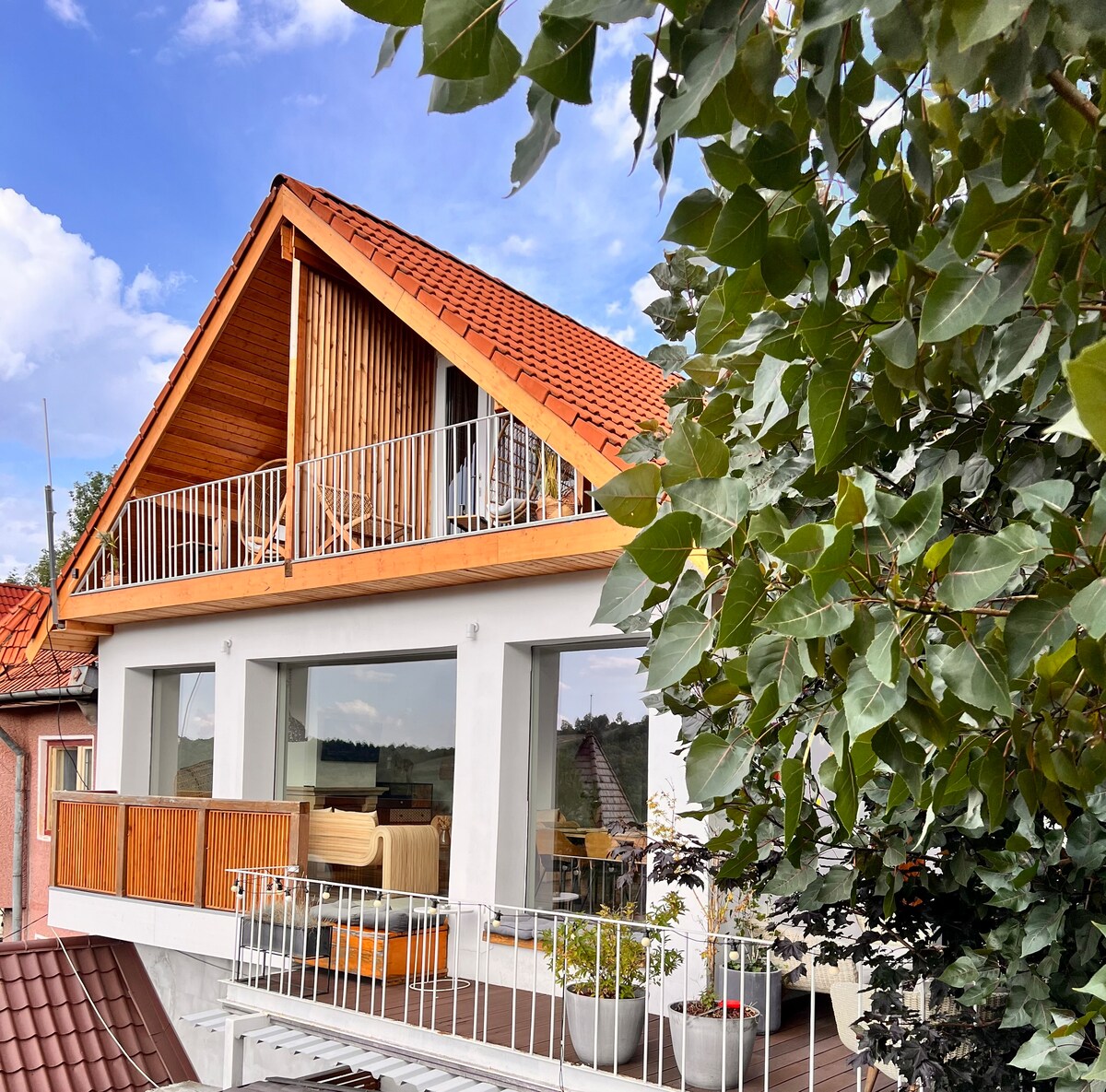 Terasa spațioasă este locul perfect pentru a vă bucura de o cafea în aer liber, în timp ce savurați priveliștea minunată a împrejurimilor. Aici puteți simți că sunteți departe de agitația orașului, dar totuși la câțiva pași de atracțiile principale ale Brasovului. Centrul istoric al Brasovului, se află la doar 5 minute distanță. Veți avea oportunitatea de a explora și de a descoperi frumusețea și istoria acestui oraș magnific într-un mod convenabil și ușor.