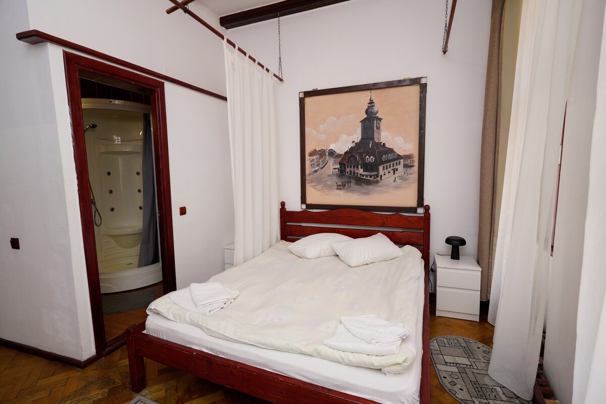 The room is located in a very small boutique hotel, in the city center of Brasov, on the Postavarului Street, just 2 minutes from the Council Square. Explore Brașov, admire the medieval architecture, and enjoy local cuisine. If you're planning a day trip, the legendary Bran Castle (Dracula’s Castle) is an easy 40-minute drive. Ideal for couples or solo travelers, looking for a peaceful yet central place to stay, our hotel combines the charm of the old town with the comfort of a modern stay.