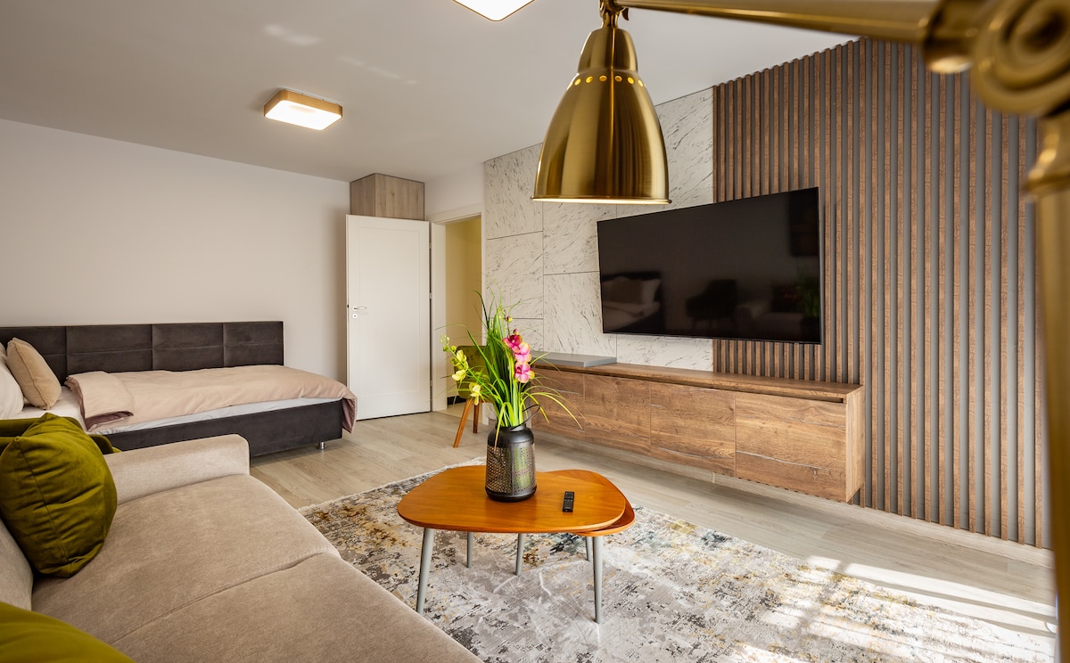 Wake up to stunning Carpathian Mountain views from your private balcony! Alpine Escape Mountain View Studio blends comfort, style, and convenience, just 5 minutes from Brașov’s city center. Perfect for festive strolls at the Christmas Market, skiing weekends, summer hikes, or a peaceful work-from-anywhere getaway. Cozy, modern, and ready for your winter escape!