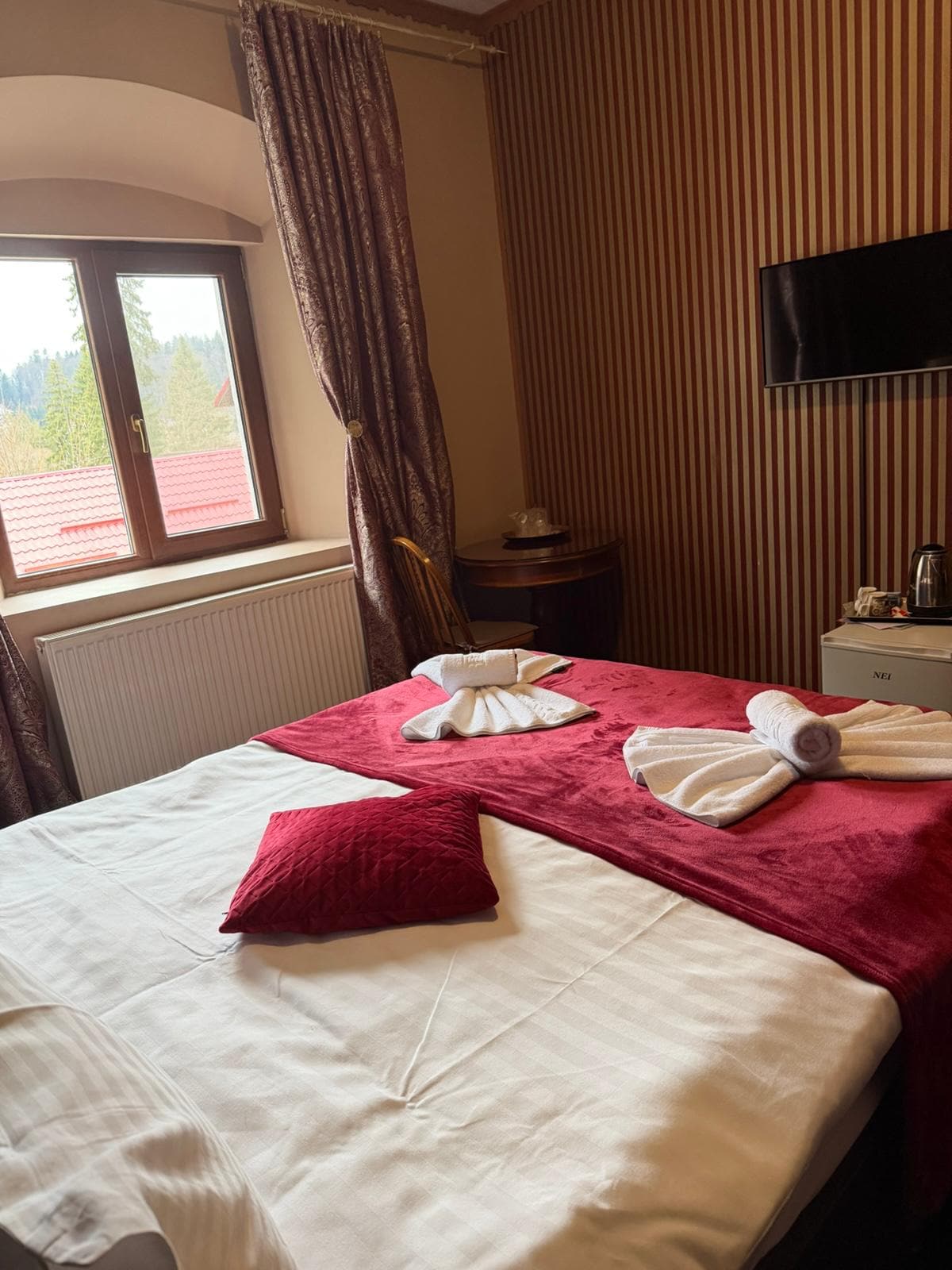Enjoy a relaxing stay in this fully equipped apartment in Hanul Anei Villa 1, perfect for families or groups. With 2 bedrooms, a living room, a bathroom and a full kitchen, the apartment comfortably hosts 4–5 guests. Step out to the private courtyard, park safely, and explore Brașov and nearby attractions like 7 Ladder Canyon, Old Town or Bran Castle. For larger groups, additional studios in the villa or the entire property can be rented, accommodating up to 15–20 guests. Optional outdoor jacuzz