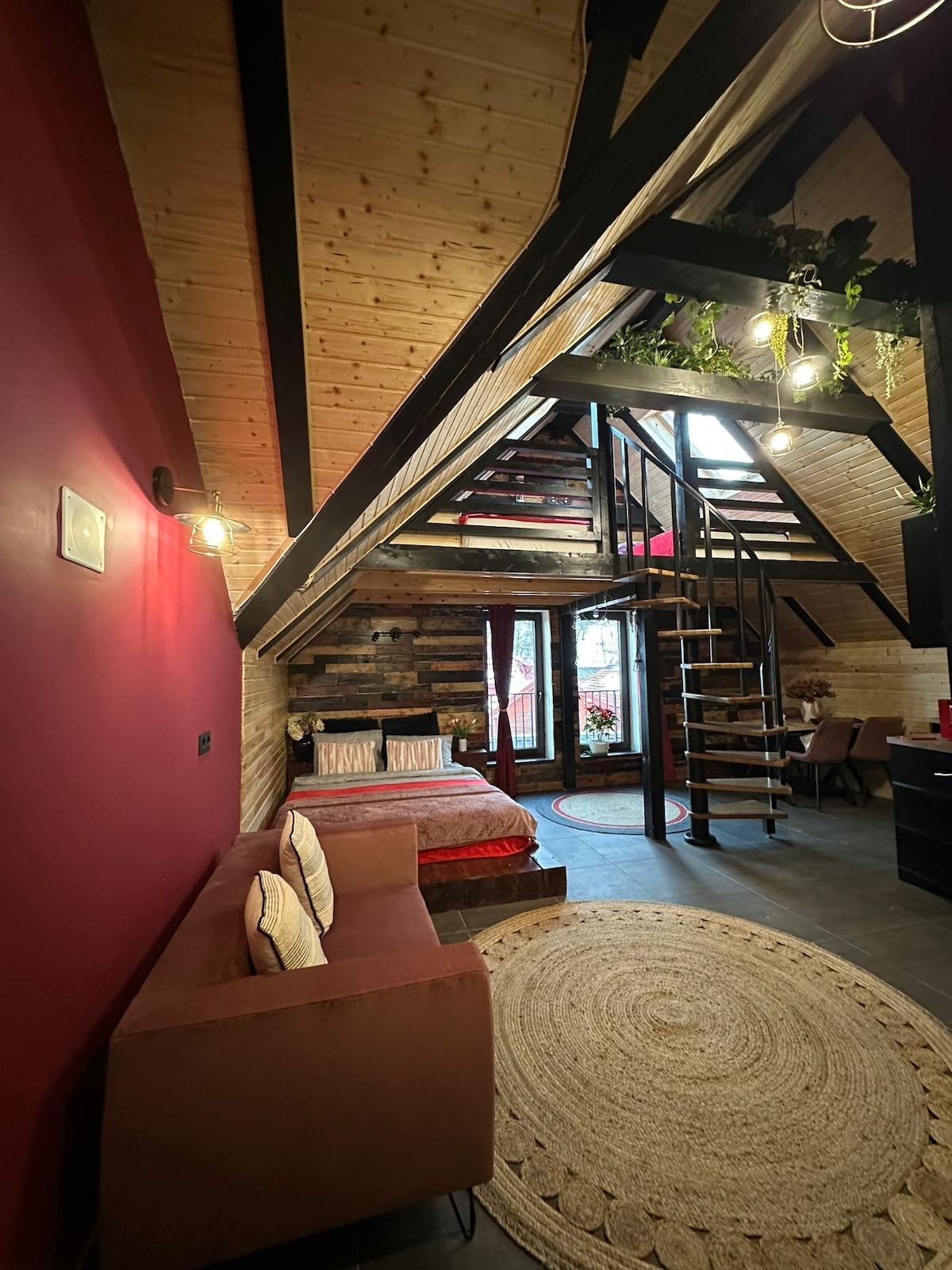 A uniquely and carefully designed, this apartment perfectly combines coziness with stunning Scandinavian accents. Situated in a new residential neighborhood, we go above and beyond to ensure a unique experience for our guests. Our home can accommodate up to 4 people and has its parking lot. The standout feature of this penthouse is the spacious terrace with a jacuzzi and a panoramic view over the mountains, being ideal for couples, business travelers, solo adventurers, or families (with kids).