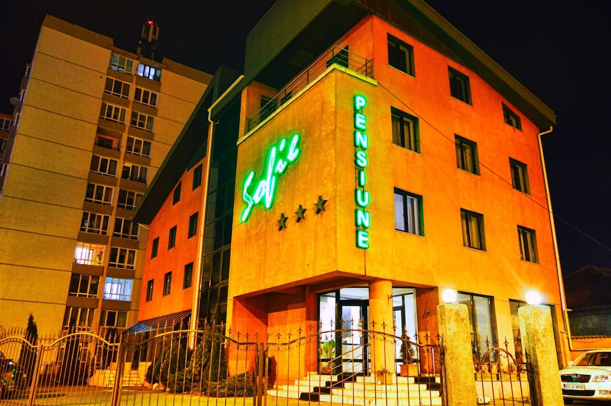 Pensiunea Sofie 3★ din Brașov, situată pe strada Codrul Cosminului nr. 122, oferă cazare confortabilă aproape de Gara Brașov și Paradisul Acvatic. Dispunem de 17 camere, cu variante pentru 2 persoane, 3–4 adulți și familii cu doi copii. Posibilitate mic dejun, acces rapid către centrul orașului, stație RATBV la 20 m și magazine non-stop în apropiere. Alegerea ideală pentru turiști, familii și călătorii de afaceri.