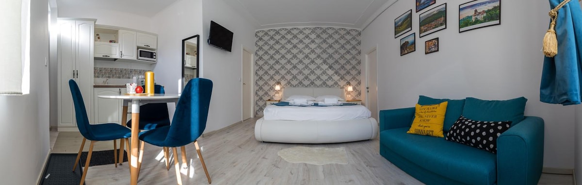 Comfortable, warm, well-furnished studio, walking distance from the Old City and the new city center. The perfect base for your Transylvanian "paseos", whether you're looking for a summer break surrounded by nature, hiking in the mountains surrounding the city, or a skiing holiday, or just exploring the city and the castles around, this is the place for you.