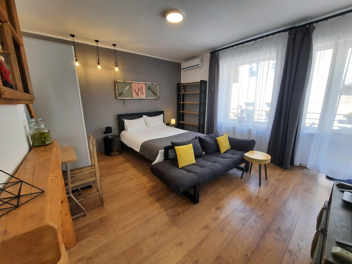 Boem Studio is located close to the New Center of Brasov - near the new mall Afi Brasov, but the natural setting in which it is positioned ensures quietness and isolation from the noise of the city. The studio is arranged in a comfortable and elegant manner, its facilities being of superior level, in order to offer you a pleasant stay. We want to prepare a warm atmosphere, waiting for your return.