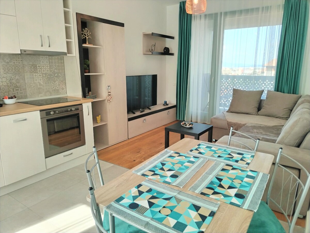 Located in a new neighborhood, near the best shopping center in Brasov, Coresi Shopping Resort. Here you can enjoy a large variety of restaurants, shops, a modern spa and a fitness center. The beautiful Old Town of Brasov is only a 10 minutes' drive. The ski slopes of Poiana Brasov are 25 minutes' drive away. Free parking place is available in front of the building. Bus station to city center is only 3 minutes walking distance.