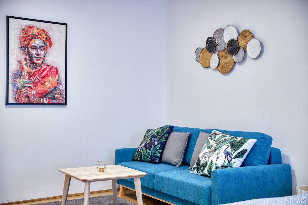 Welcome to Naive Home, an apartment with soul. This comfortable studio with AC is located in the Bratislava Old Town, with amazing view of the Reformed Church. Historical center, shops, restaurants - everything the city can offer is just a step away. This apartment is quiet (even though tram stop is close) because it is oriented to a silent courtyard. Naive Home decorations are inspired by folk ornaments, all are handpainted. We are located on 2nd floor with elevator in residential building