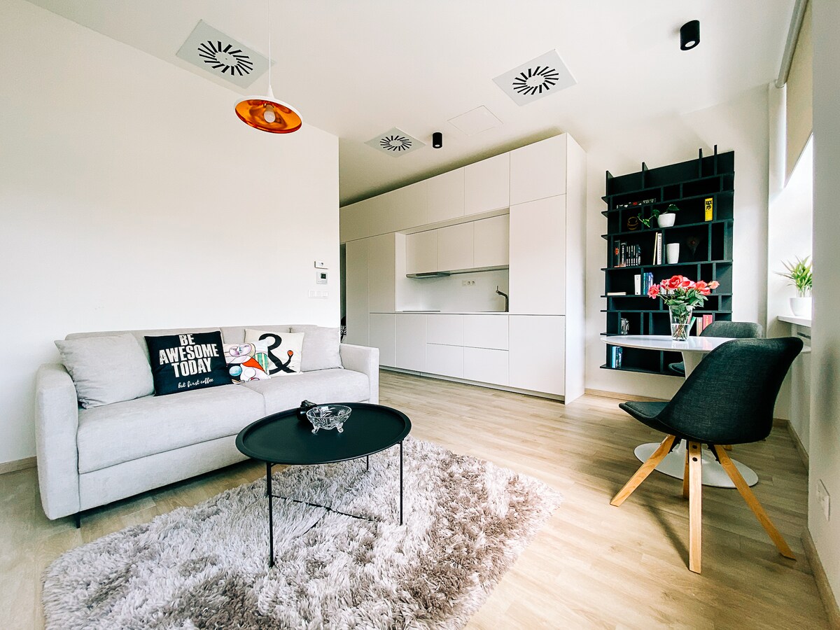 Enjoy a stylish experience at this centrally located place, suited for shorter travelling trips as well as for longer business trips. The apartment features a fully equipped kitchen, a queen size bed, a sofa and a balcony with a nice view to the quiet inner block of this newly built residential building. The apartment doesn’t have a parking spot available, but you can easily move around the city by walk, shared bikes or public transport as there are bus and tram stops closeby the apartment.