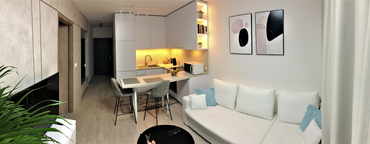 Brand new apartment in Urban Residence (built in 2021). Perfect location - quiet and close to the city centre, with great public transportation connections (Main Train Station 8 min, Central Bus Station 17 min, Bratislava Airport 25 min). Reserved parking in the garage within the building. Moreover, the apartment uses green energy. Whether you are coming to Bratislava for a business trip or a city break, everything is set here to make you feel comfortable and enjoy your stay!