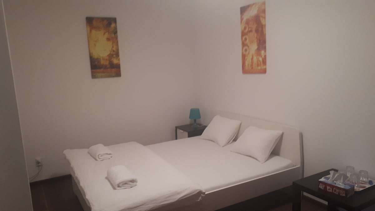 Accommodation outside the city with aircondition. In the evening, the quiet street guarantees privacy and rest after a busy day. Suitable for couples and undemanding travelers. Furnished kitchenette (microwave, hob, fridge). Bathroom with toilet and wardrobe for personal belongings in each room. TV and sofa in the each bedroom. Parking directly at the building. By car to the center 6km. Close to the bus stop with connections to the main bus stations and also to the city center.