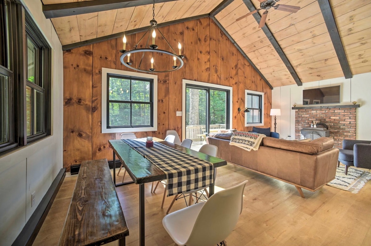 Surround yourself in nature and cozy modern comfort. The romantic mid-mod-styled chalet backs to 10 acres of peaceful forest yet is just 12 min drive to Mount Snow for great skiing. 3 min. to the boat launch of gorgeous Lake Whitingham where you can rent jetskis & boats or go swimming & fishing. Hike trails to the charming town of Wilmington with its coffee shops & restaurants. Pools & hot tub up the road at clubhouse. Just steps away from iceskating, pickleball, hiking & snowmobile trails.