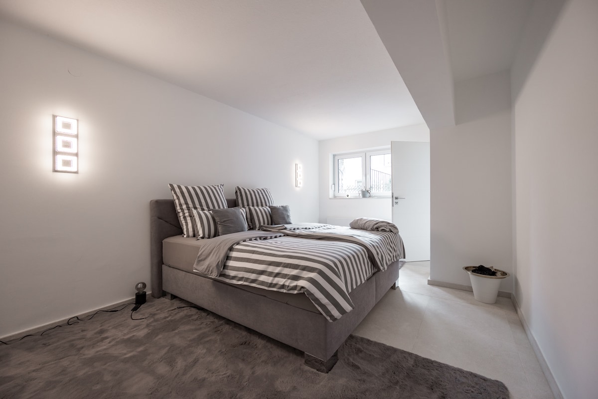Stilvoll gestaltet, bietet unser Apartment eine zentrale Lage. In 15 Gehminuten bist du in der Innenstadt, eine Bahnhaltestelle liegt 2 Minuten entfernt. Ein ausgestatteter Arbeitsplatz und schnelles Internet ermöglichen produktives Arbeiten. Die Küche ist komplett eingerichtet, und das gemütliche 1,40 m breite Boxspringbett lädt zum Entspannen ein. Bettwäsche, Handtücher und weitere Essentials sind natürlich vorhanden. Der Smart-TV bietet Zugriff auf viele Apps wie Netflix, DAZN und YouTube.