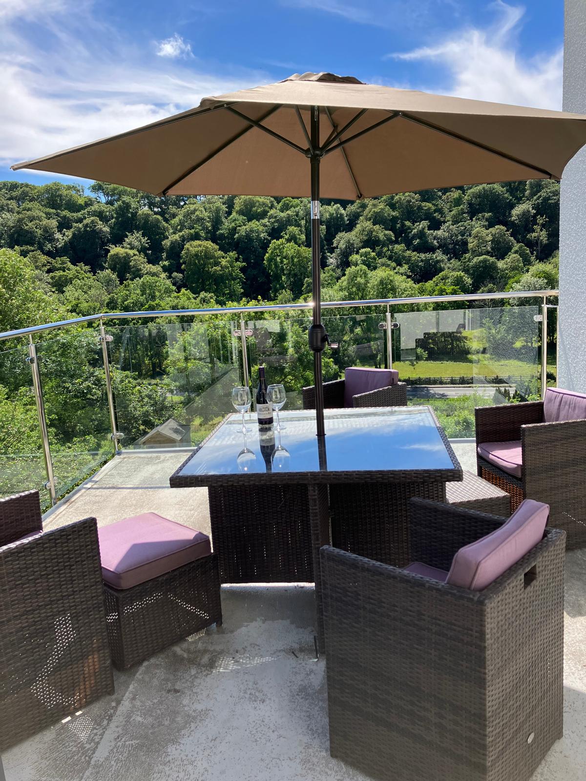 We live in a quiet location situated on the outskirts of Barnstaple, tucked away in a quiet residential area. Nearest amenities are approx 15 min walk. “The Tarka suite”is made up of 3 seperate rooms plus a covered garden room with electric points. There is a king sized bed, 2 seater sofa, a small dining area and small well equipped kitchen area which includes a std fridge, a ninja twin drawer acti fry and single hob. Crockery, pans and cutlery are provided. Use of hot tub at extra cost.