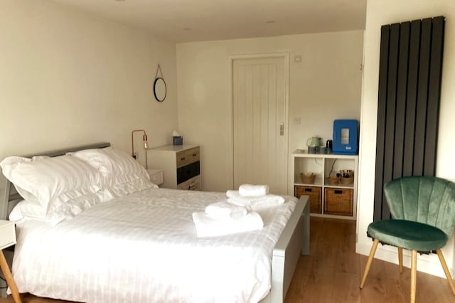 Hang Five is a comfortable and spacious one bedroom annexe attached to our family home in Braunton, 5 minutes walk to the centre of the village. NOT SUITABLE FOR GROUPS The bedroom has an en-suite shower room and seperate lounge with kitchenette and dining area. Braunton hosts a fantastic selection of cafes, bars, restaurants, takeaways and a range of local shops. It's the gateway to North Devon's famous surfing beaches, with Saunton, Croyde, Putsborough and Woolacombe 10-20 minutes drive.