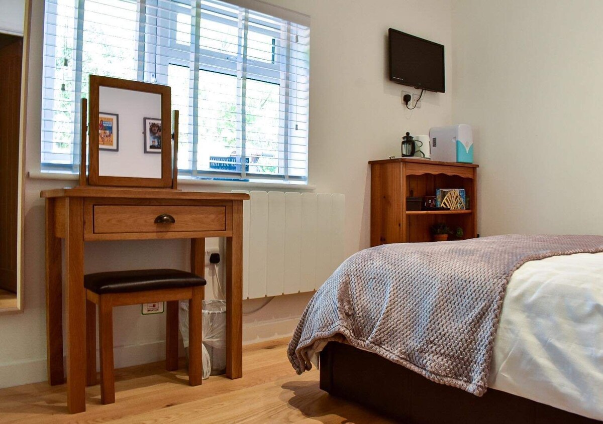 We live in a quiet location situated on the outskirts of Barnstaple, tucked away in a quiet residential area. Nearest amenities are approx 15 min walk. “The Tarka suite”is made up of 3 seperate rooms plus a covered garden room with electric points. There is a king sized bed, 2 seater sofa, a small dining area and small well equipped kitchen area which includes a std fridge, a ninja twin drawer acti fry and single hob. Crockery, pans and cutlery are provided. Use of hot tub at extra cost.