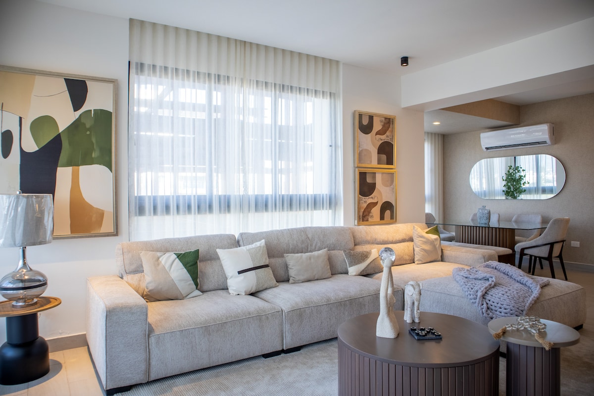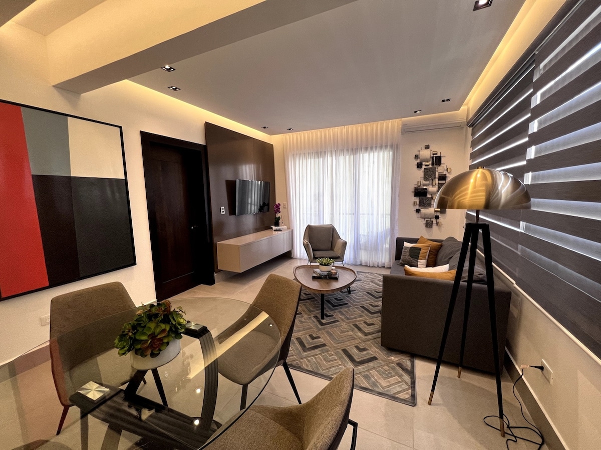 This is a beautiful exclusive suite on the 12th level of the tower with a panoramic view. The concept is modern and luxury . Led iluminated ceilings. Air conditioning in both the living room and bedroom offer a pleasant climate. A very comfortable bed for a good night sleep . 50 -Inch TVwith NETFLIX,WiFi,cable and other amenities are included. Located in one of the most prestigious and secure areas .Whether it’s a business trip or a relaxation vacation, this will be the perfect getaway.