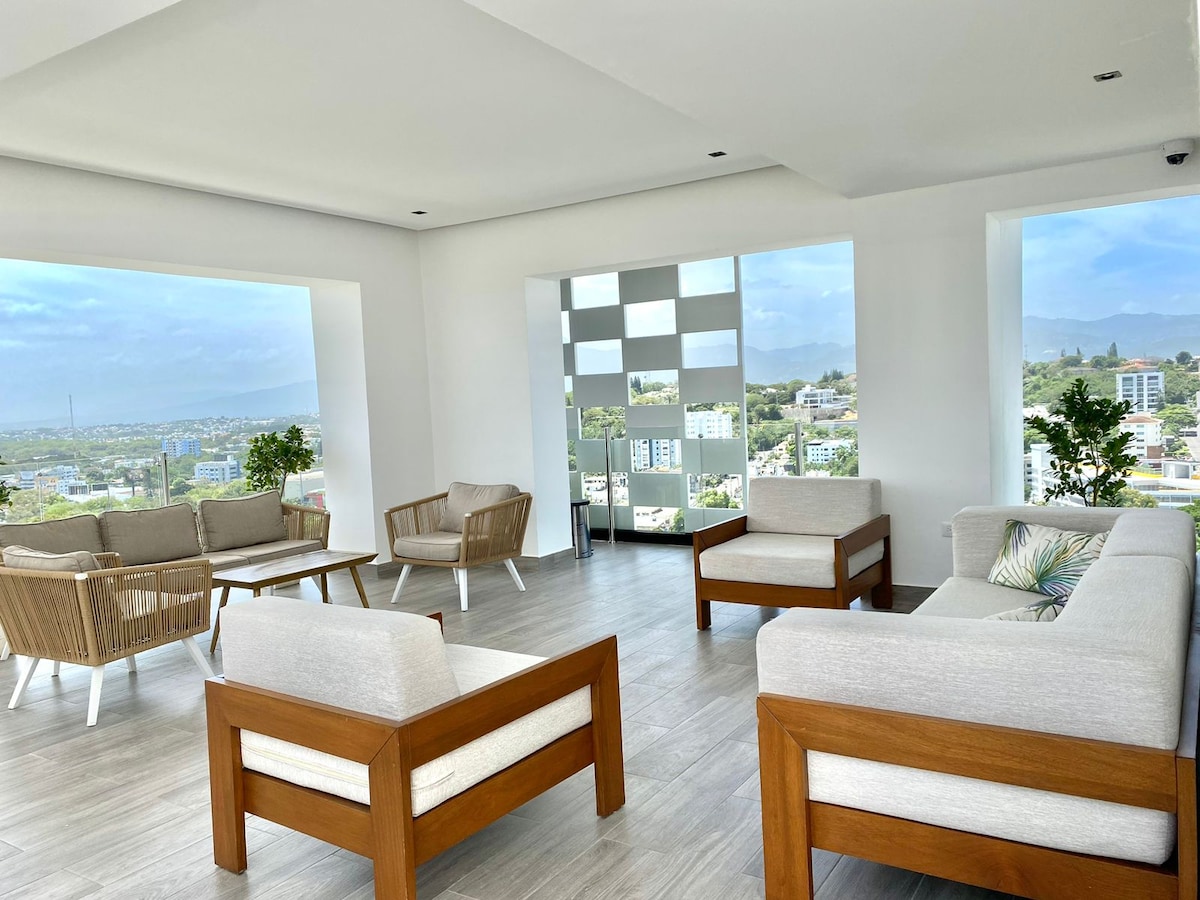 It will be very easy to plan your visit☺️! This place has a strategic location, in the la esmeralda sector and just behind the international square of Santiago de los Caballeros. This apt is located in one of the most modern buildings in the city and has security in the building 24 hours, beautiful view, gym, swimming pool, rooftop, covered terrace and underground parking!