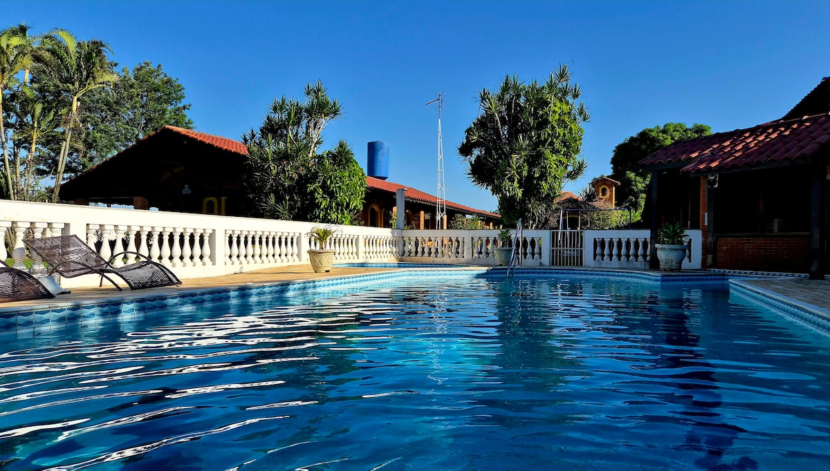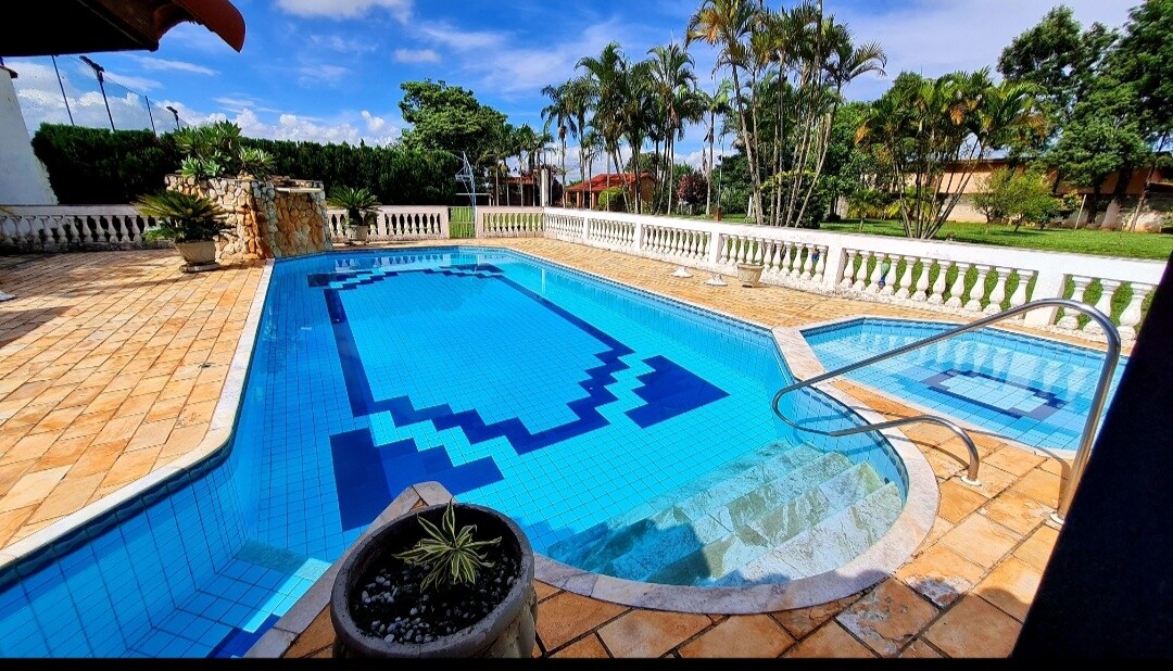 "Linda chácara TODA PLANA, com ACESSIBILIDADE, 5mil mts PRIVATIVO wifi fibra de 1 GB, próx. ao centro Nac. de paraquedismo e baloes, em CONDOMINIO FECHADO, ronda 24h casa terrea avarandada, com cadeiras de balanço e rede de descanso, Piscina adulto com cascata e infantil, bilhar, ping pong, pebolim, botao, espaço gourmet amplo com churraqueira tradicional e para espetos, fogao e forno a lenha para paes e pizza, capela, fogueira, campo de futebol iluminado, gramados, é rota dos baloes .