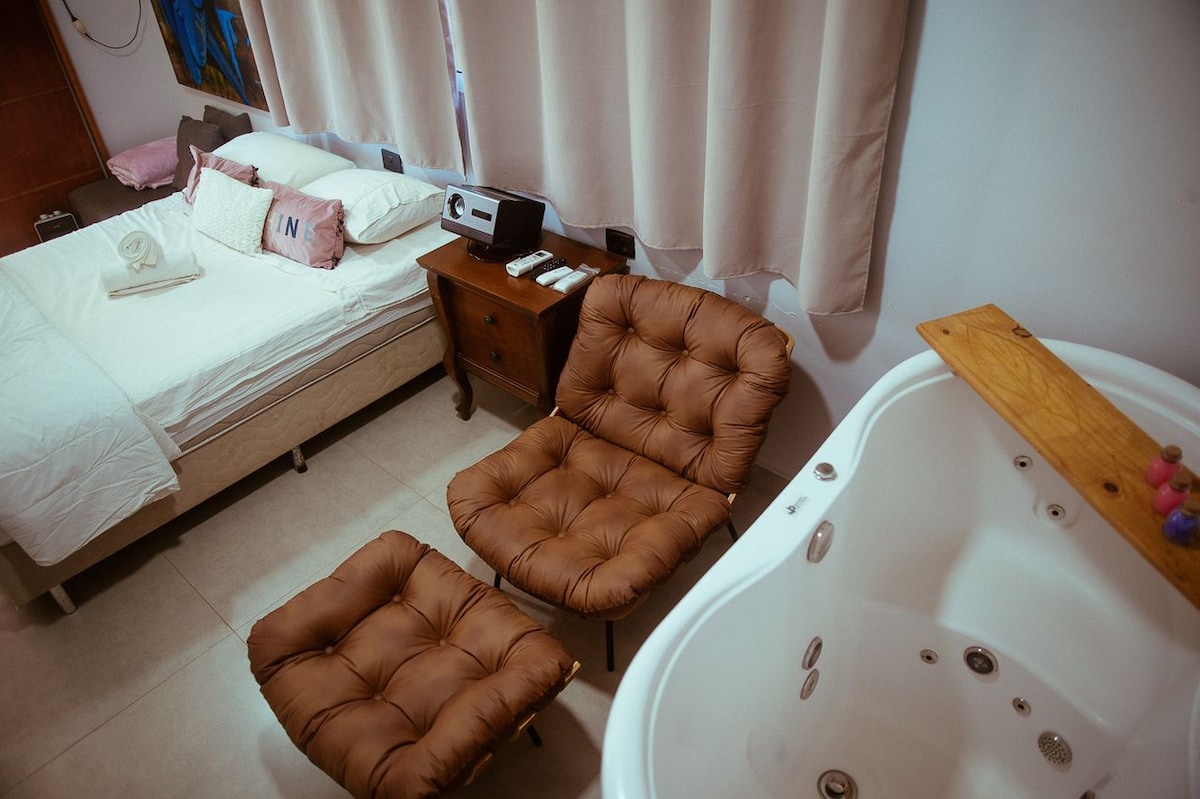 99% dos hóspedes atribuíram nota máxima para o nosso espaço! Você desfrutará de um ofurô exclusivo com hidro, aquecimento e cromoterapia (LED). Você terá um local acessível no pavimento térreo, com decoração elegante e natural. Cama superconfortável e roupas de cama premium para você ter uma experiência única. Sua própria micro-cozinha e banheiro privativo de alto padrão! E muito mais! *IMPORTANTE*: A Villa tem várias suítes (Amarela, Azul e Verde). Sua reserva é para 1 suíte exclusiva.