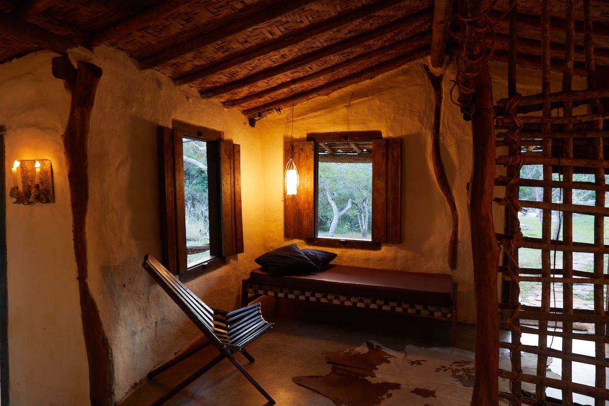 Na construção de pau a pique o modo primitivo de vida se entrelaça com a ambientação que oferece beleza e conforto aos hóspedes. A propriedade de 20 hectares é compartilhada pelo Ranchão e pela Casa Cambará, distantes respectivamente 200 e 260 metros do Ranchinho. Para o conforto de todos, o silêncio é fundamental. A música deve ser baixa. A distância do estacionamento à casa é de 70 metros que devem ser percorridos à pé. Considere essa informação caso tenham muitas bagagens.