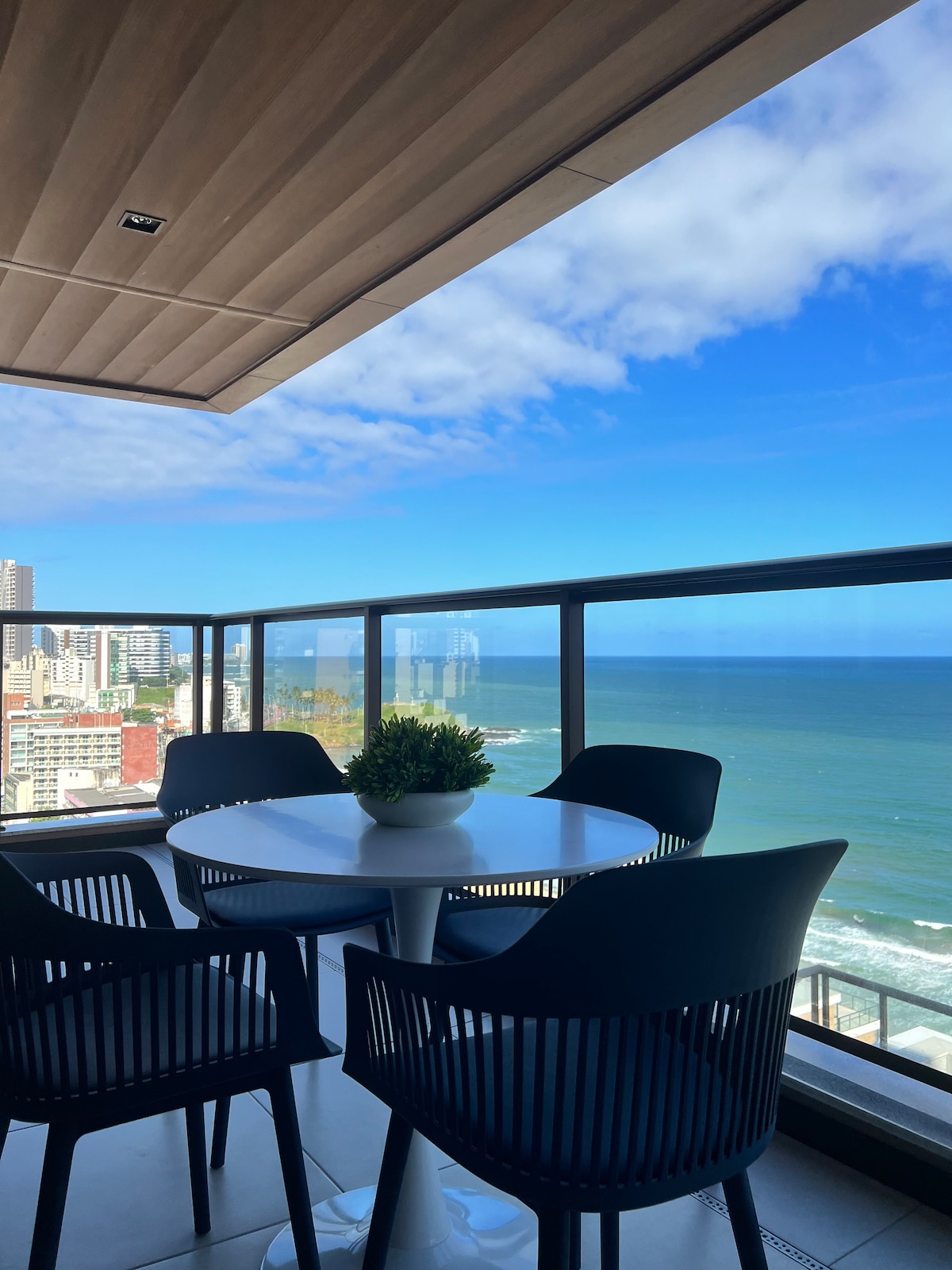 Lovely apartment with stunning ocean views, overlooking Salvador's main landmarks. From the balcony, besides the beautiful view of the All Saints Bay, you can admire the Bahia Marina, the Lacerda Elevator, the Solar do Unhão, and the São Marcelo Fort. The space is elegantly decorated, with environments equipped with everything you need, including a balcony with magnificent views. The bedroom features a comfortable queen-size bed, while the living room has a double sofa bed.