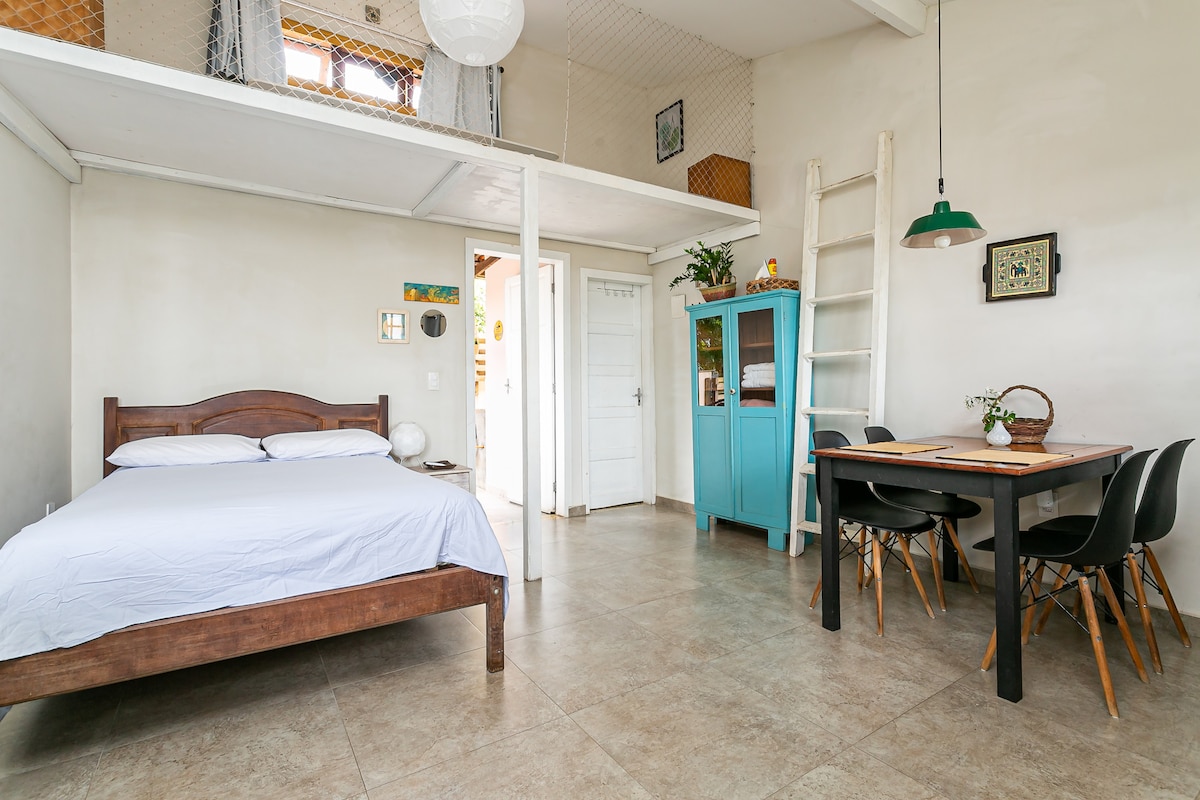 A nossa casinha foi pensada com muito carinho para trazer o máximo de conforto aos nossos hóspedes, desde uma jacuzzi incrível super privativa no deck da sua suite, enxoval inteiro de 400 fios a uma internet excelente de 200 Mb em fibra ótica para quem está de homeoffice. Nossa Vila tem 2.200 m² com lindas árvores que proporcionam um espetáculo a parte. Temos visitas diárias de 3 espécies de macacos, diversos pássaros e até bichos preguiça. :) Estamos a 2km do Quadrado e 3 km da praia + próxima