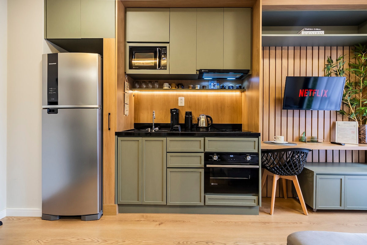 Relax in this modern studio at All Batel, approximately 17m², located in the Centro/Batel area. The newly opened building offers great comfort and convenience. Features include a heated infinity pool, gym, furnished kitchen, bed linens and towels. Parking is available in the building for an additional fee. Make your reservation to enjoy this incredible space! A calm and stylish environment.