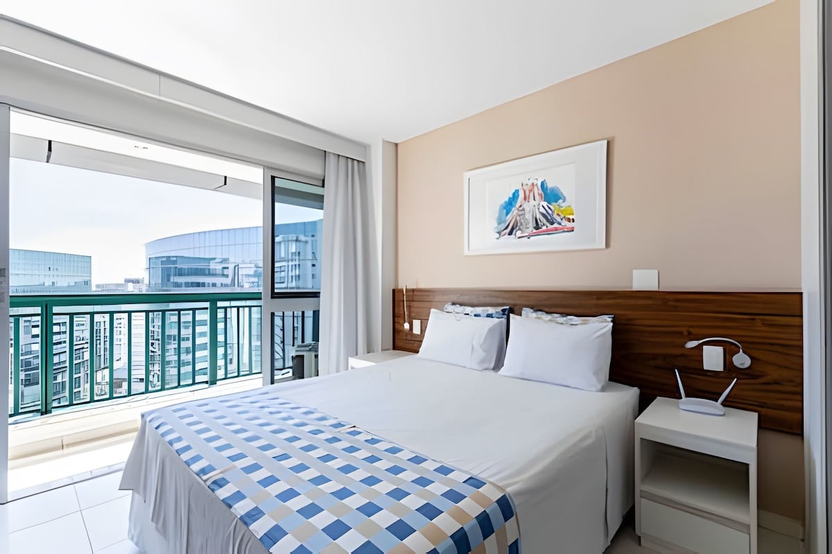 Bourbon Hotel with a rooftop pool and gym, located on the waterfront, just 300 meters from the famous craft market. Free parking and 24-hour reception. The amenities include: - Spacious room with a King-size bed - Sofa bed - Split air cond - 50” Smart TV with 74 channels and Netflix - Minibar - Microwave - Wi-Fi - 16th floor with a sea view - Spacious bathroom with hot/cold shower and hairdryer - Pillows and bed linen - Bath and face towels - Ironing board and iron - Full-length mirror - Safe